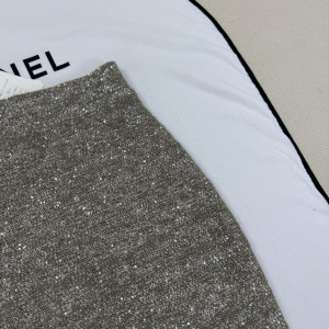 CHANEL 실버 글리터 펜슬 스커트