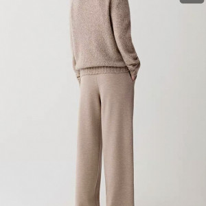 신상품 5143 스타일 소미 26 봄여름 60수 양모 밴딩 와이드 팬츠입니다. 16게이지 양면 골조직(리브 인터록) 직조법으로 제작되었으며, M/L/XL 사이즈 현품 출고 가능합니다. 온라인 모델 착용 사진 제공됩니다.