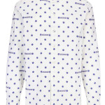 2019 가을겨울 신상 셔츠 특가 50위안. 최고급 복각품으로 맞춤 오금 부자재 사용. 전체적으로 파란색 별 패턴 자카드 원단으로 제작되어 복잡한 공정과 세련된 디자인이 특징. 여유로운 핏의 남녀공용 디자인. 화이트 컬러.