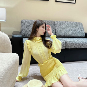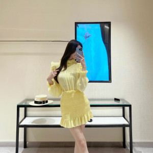 옐로우 셔링 원피스