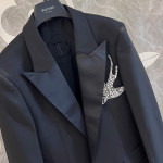 2026년 신상품으로 출시된 제비 모티브 수제 스팽글 장식이 돋보이는 블랙 정장 재킷입니다. 정교한 핸드메이드 크리스털 장식으로 고급스러운 마감을 자랑하며, 세련된 실루엣으로 다양한 스타일링이 가능합니다.
