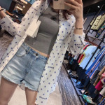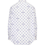 2019 가을겨울 신상 셔츠 특가 50위안. 최고급 복각품으로 맞춤 오금 부자재 사용. 전체적으로 파란색 별 패턴 자카드 원단으로 제작되어 복잡한 공정과 세련된 디자인이 특징. 여유로운 핏의 남녀공용 디자인. 화이트 컬러.
